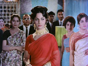 Dilip Kumar was known as the king of tragedy, so his debut in comedy was anticipated with skepticism if not amusement. However, as soon as Shyam appears, all doubts were dispelled, as he gives a hilarious performance as a villager hired to be a hero in a film who actually beats up all the baddies and is told that he will never make it in the movies. He is then soundly beaten by his mother for even thinking about joining the film industry. It must have been quite a shock when the film came out to see Dilip Kumar dancing and singing at a children’s party, pulling faces and putting on silly voices. The others play roles with which they were usually associated. Waheeda and Mumtaz were well cast as opposing types. While Waheeda was already established as a major star, this was the film that moved Mumtaz onto the A-list of actresses, a position she would hold until her marriage. Nirupa Roy is saintly and long-suffering, while Pran is cruel and villainous.